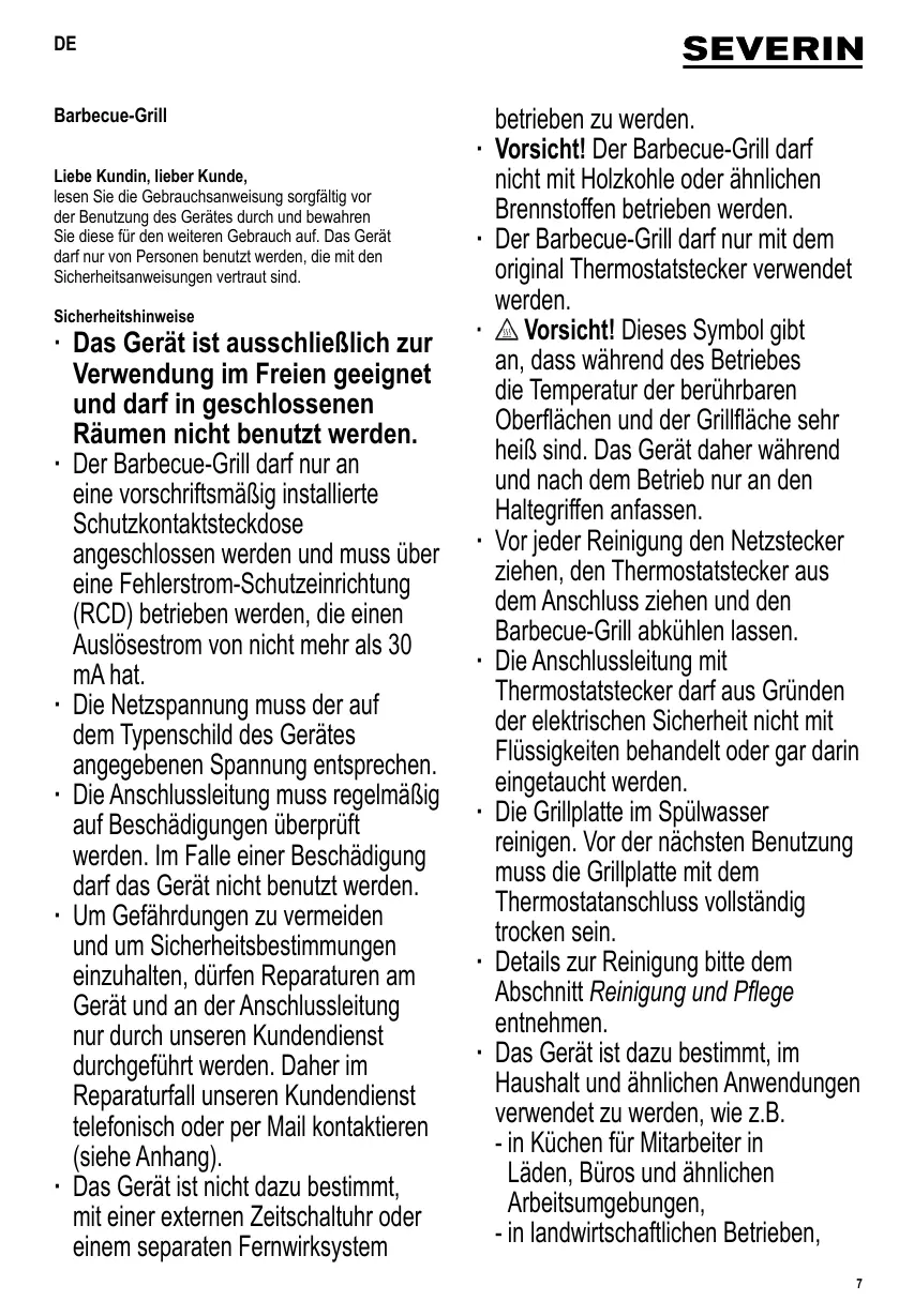 PG 8541 - Elektrischer Grill SEVERIN - Kostenlose Bedienungsanleitung