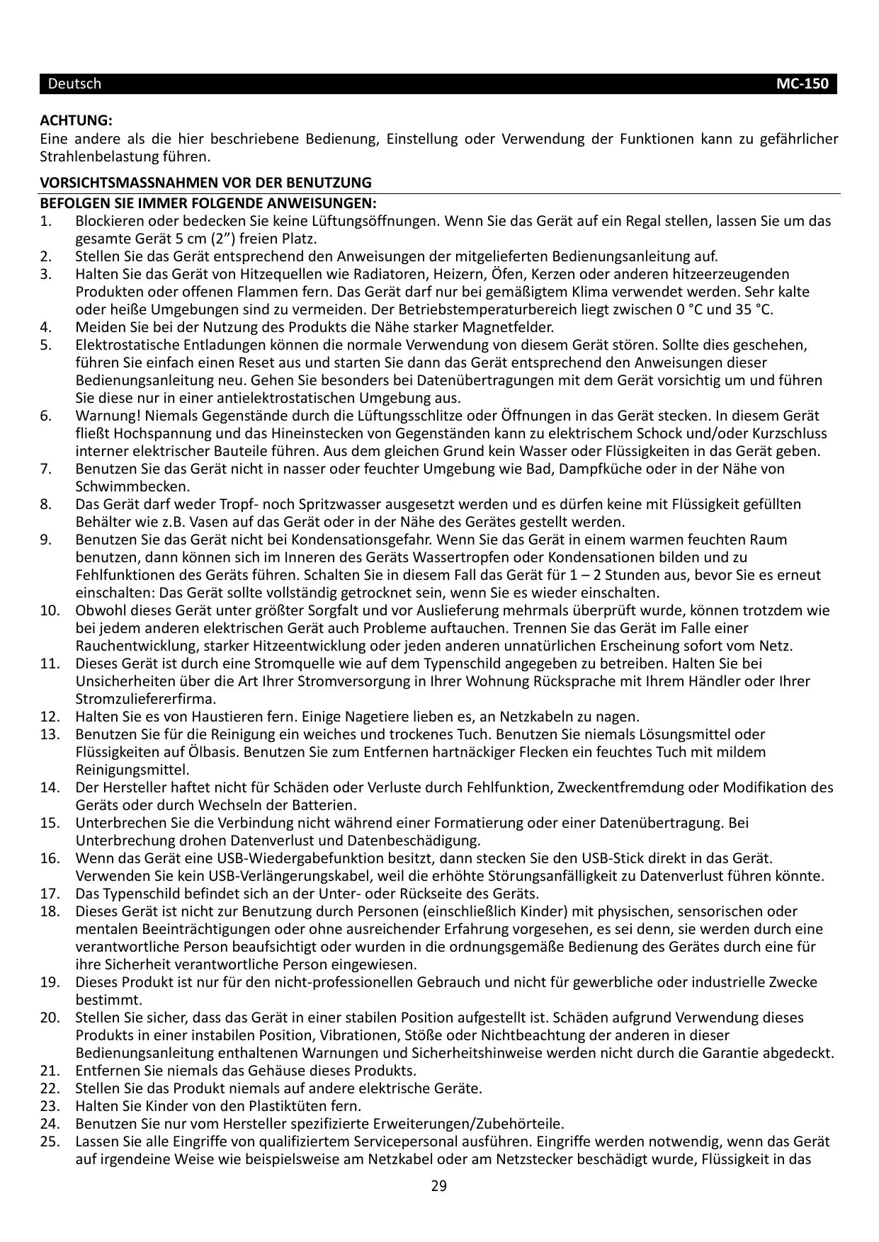 BEDIENUNGSANLEITUNG MC-150 LENCO