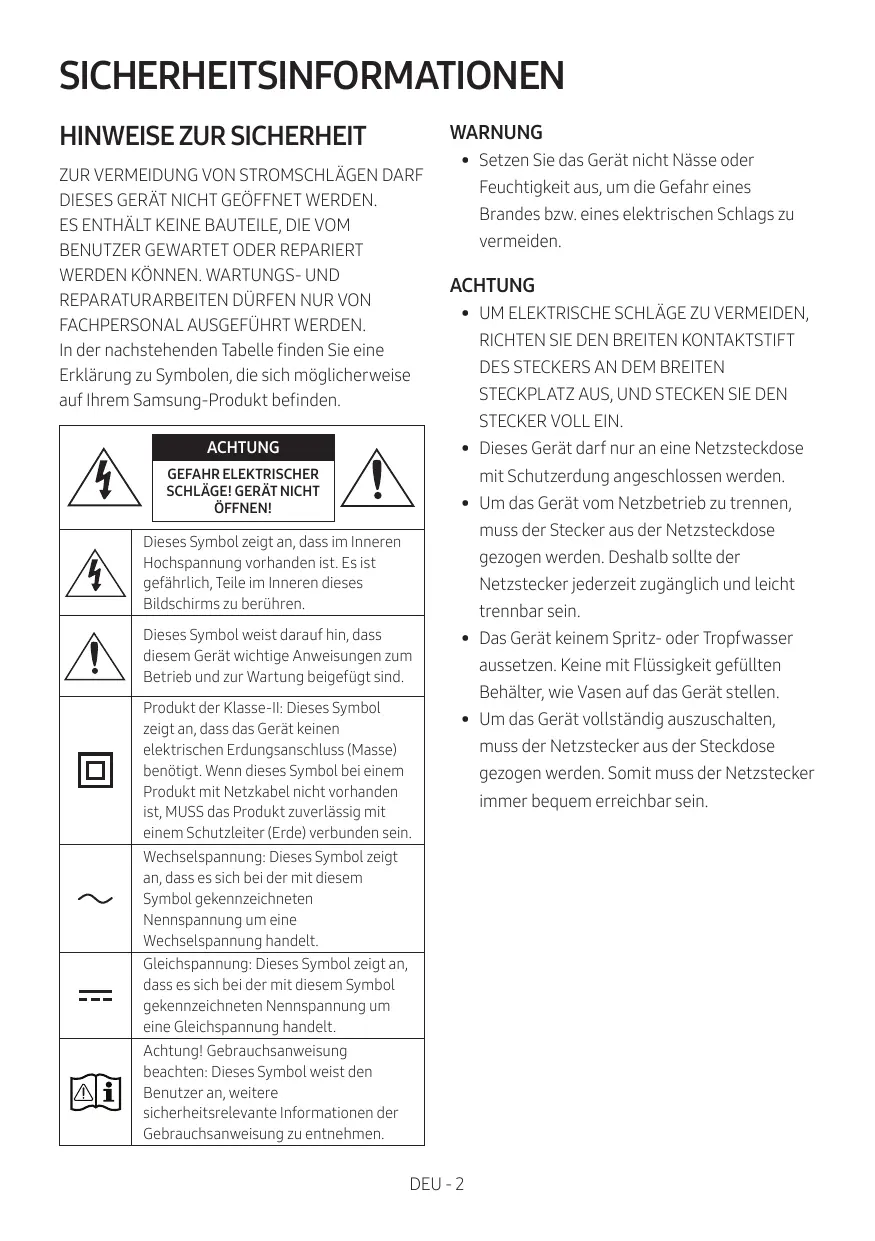 auf hrem Samsung-Produkt befinden STECKPLATZ AUS, UND STECKEN SIE DEN STECKER VOLL EIN Dieses Gerät darf nur an eine Netzsteckdose