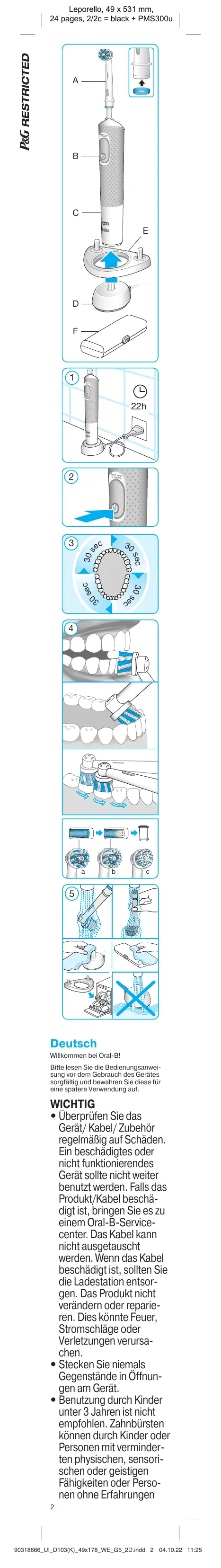 Finden Sie kostenlos die Bedienungsanleitung des Geräts PRO KIDS SPIDER MAN ORAL-B als PDF.