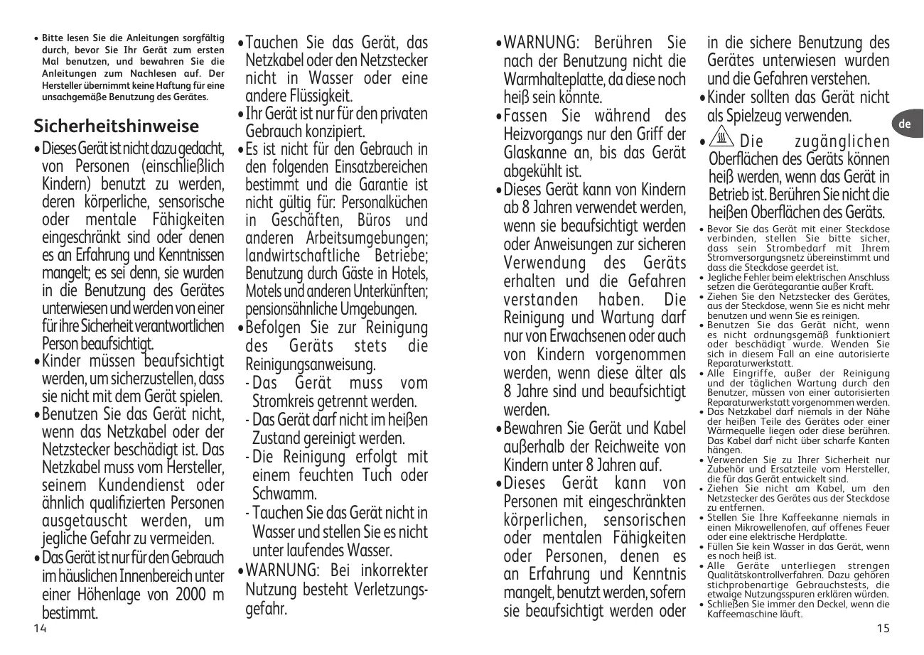 + Assurez vous de ne toucher que la poignée de la verseuse verre pendant la chauffe et jusqu'au refroidissement complet.