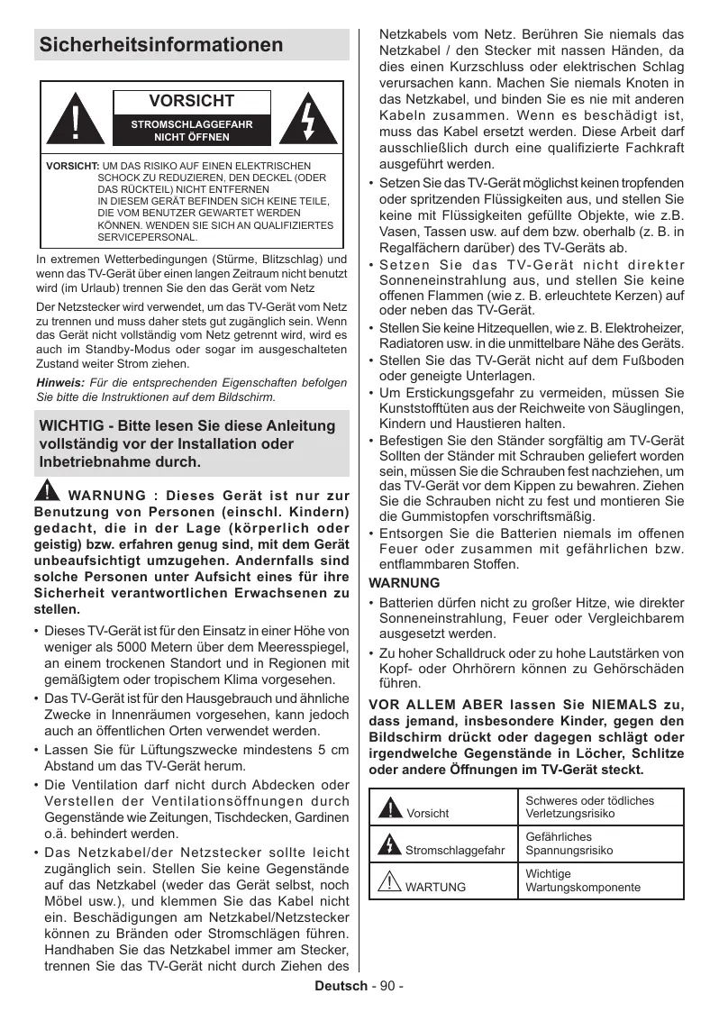 + Stellen Sie IMMER sicher, dass das TV-Gerät nicht