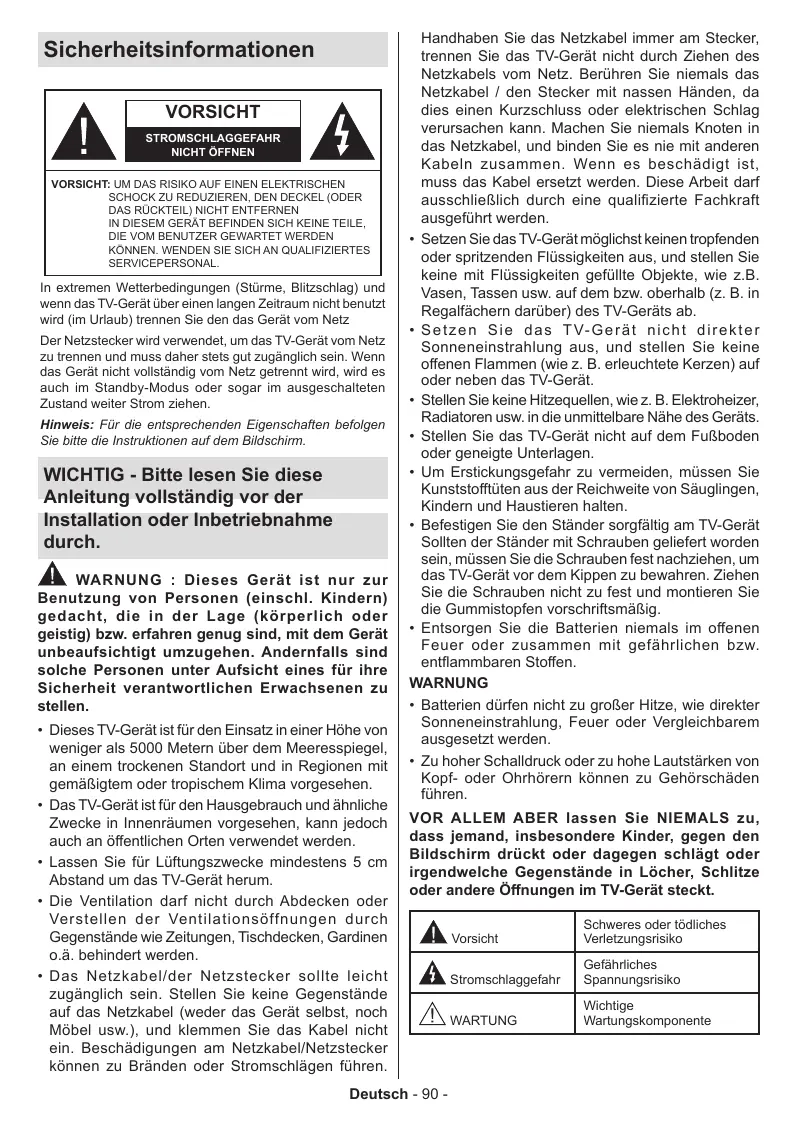 + Stellen Sie IMMER sicher, dass das TV-Gerät nicht