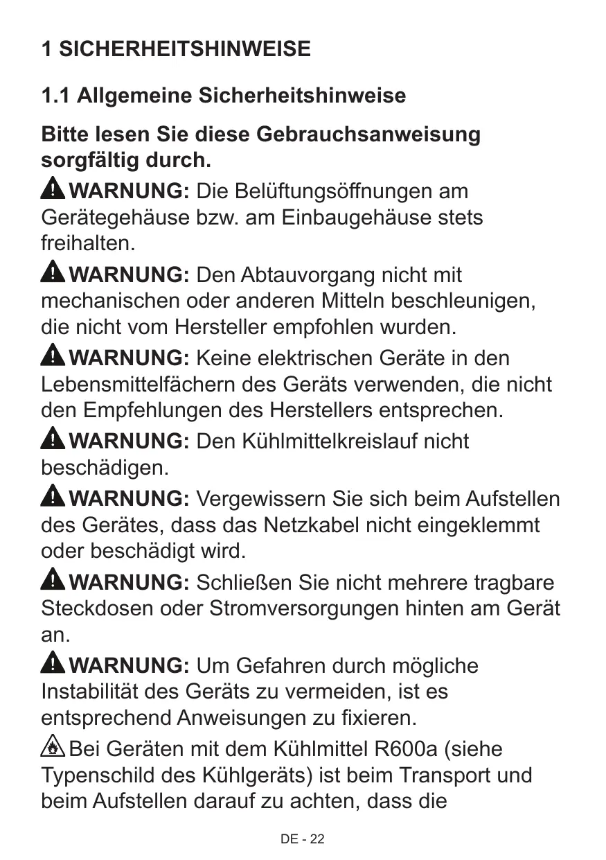 éléments du réfrigérateur lors de son transport et de son installation. Le R600a est un gaz naturel respectueux de l’environnement, mais il est explosif. En cas de fuite résultant d'un dommage occasionné aux éléments du réfrigérateur, déplacer ce dernier afin de l’éloigner de toute flamme nue ou source de chaleur et aérer la pièce où se trouve l'appareil pendant quelques minutes.