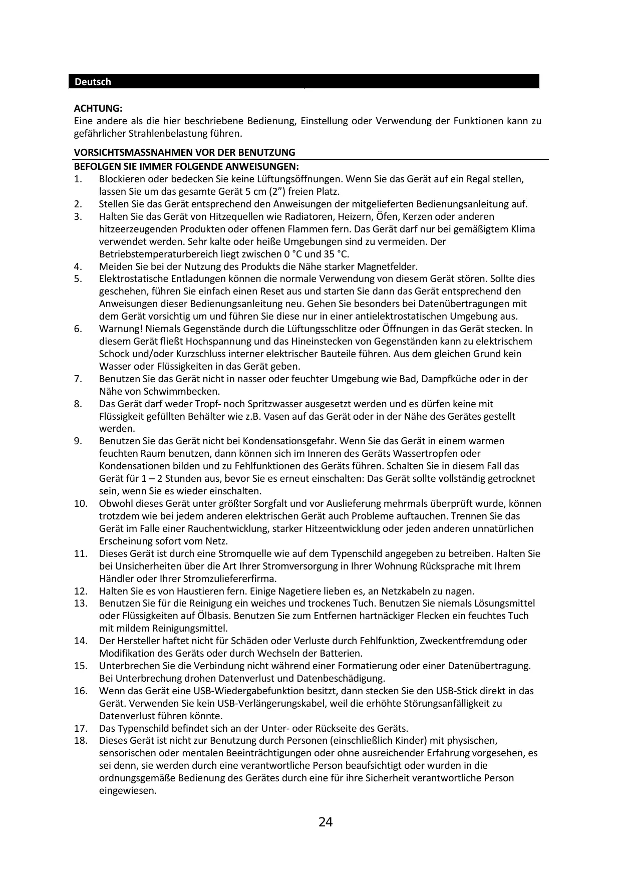 Le fournisseur n’est pas responsable des dommages ou pertes de données causés par un dysfonctionnement, une utilisation abusive, une modification de l’appareil ou un remplacement de la batterie.