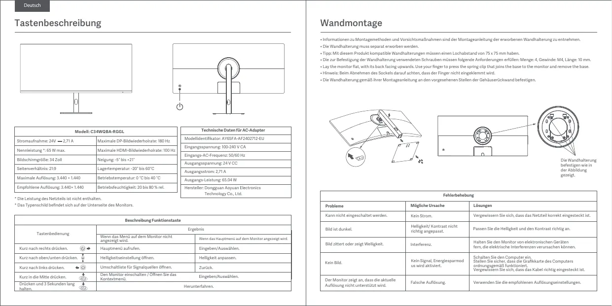BEDIENUNGSANLEITUNG G34WQi Xiaomi