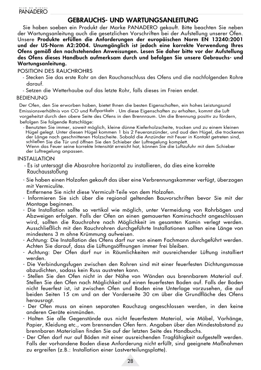 delta - HELENA - Holzofen PANADERO - Kostenlose Bedienungsanleitung