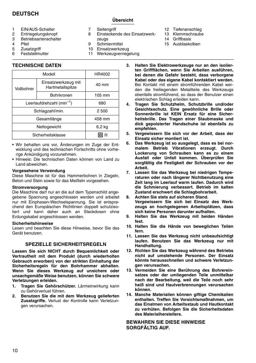 BEDIENUNGSANLEITUNG Hr4002 MAKITA