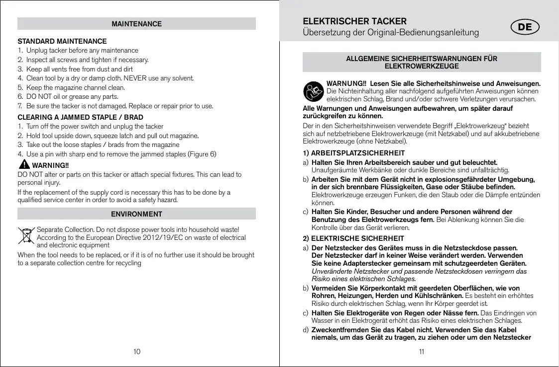E100 HOBBY ELECTRIC - Elektrischer Hefter RAPID - Kostenlose Bedienungsanleitung