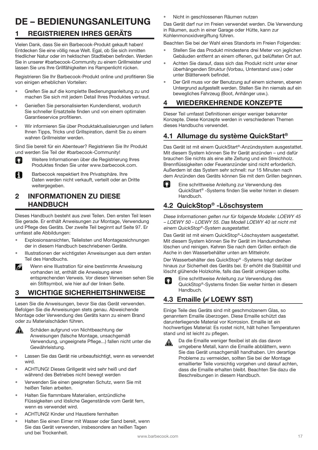 BEDIENUNGSANLEITUNG LOEWY 40, LOEWY 45, LOEWY 50 / 50 SST, LOEWY 55 / 55 SST BARBECOOK