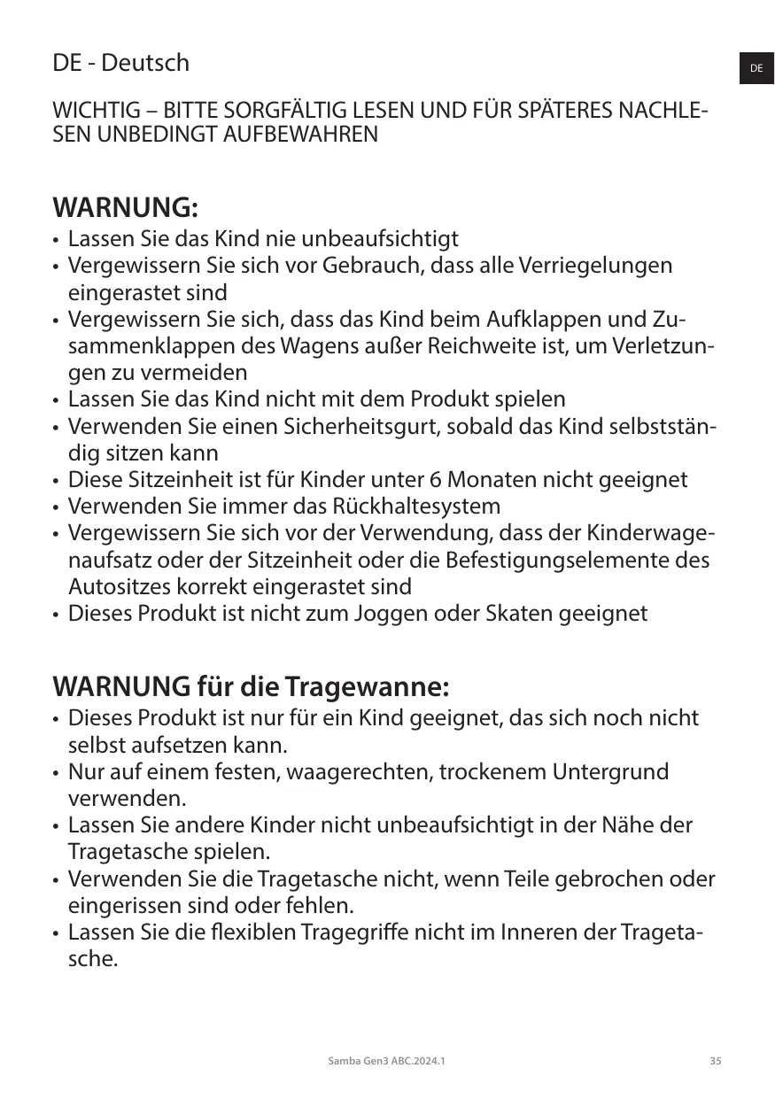 Laden Sie die Anleitung für Ihr POUSSETTE CONFORT kostenlos im PDF-Format! Finden Sie Ihr Handbuch SAMBA - ABC DESIGN und nehmen Sie Ihr elektronisches Gerät wieder in die Hand. Auf dieser Seite sind alle Dokumente veröffentlicht, die für die Verwendung Ihres Geräts notwendig sind. SAMBA von der Marke ABC DESIGN.