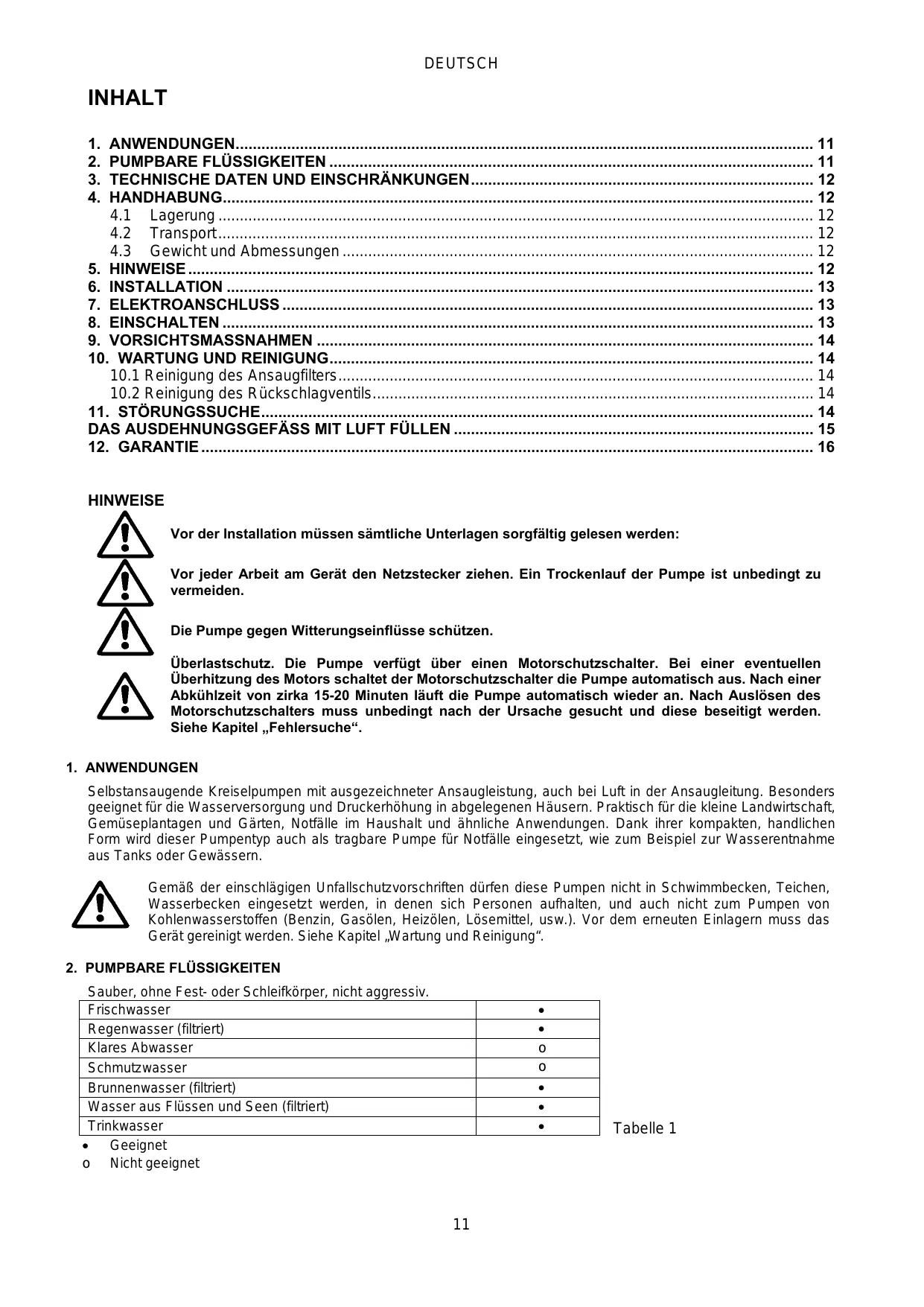 2. LIQUIDES POMPABLES Propre sans corps solide ou abrasif, sans calcaire ou minéralisation excessive