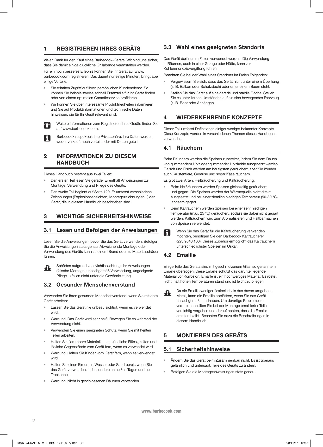Laden Sie die Anleitung für Ihr Fumoir kostenlos im PDF-Format! Finden Sie Ihr Handbuch OSKAR S - BARBECOOK und nehmen Sie Ihr elektronisches Gerät wieder in die Hand. Auf dieser Seite sind alle Dokumente veröffentlicht, die für die Verwendung Ihres Geräts notwendig sind. OSKAR S von der Marke BARBECOOK.