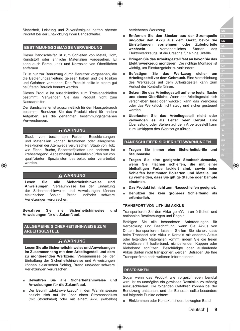 R18BS-0 - Bandschleifer RYOBI - Kostenlose Bedienungsanleitung