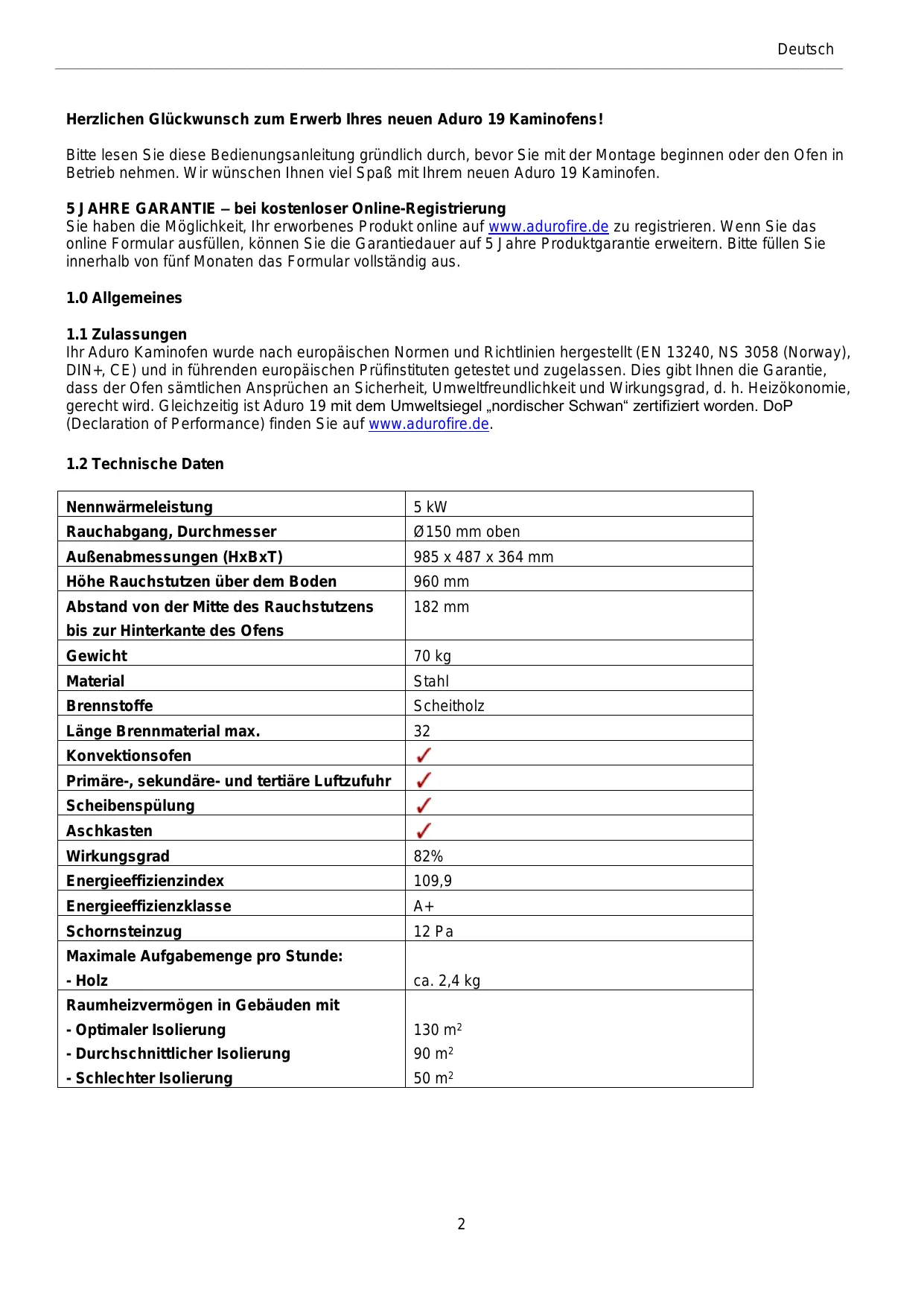 ADURO 19 - Holzofen ADURO - Kostenlose Bedienungsanleitung