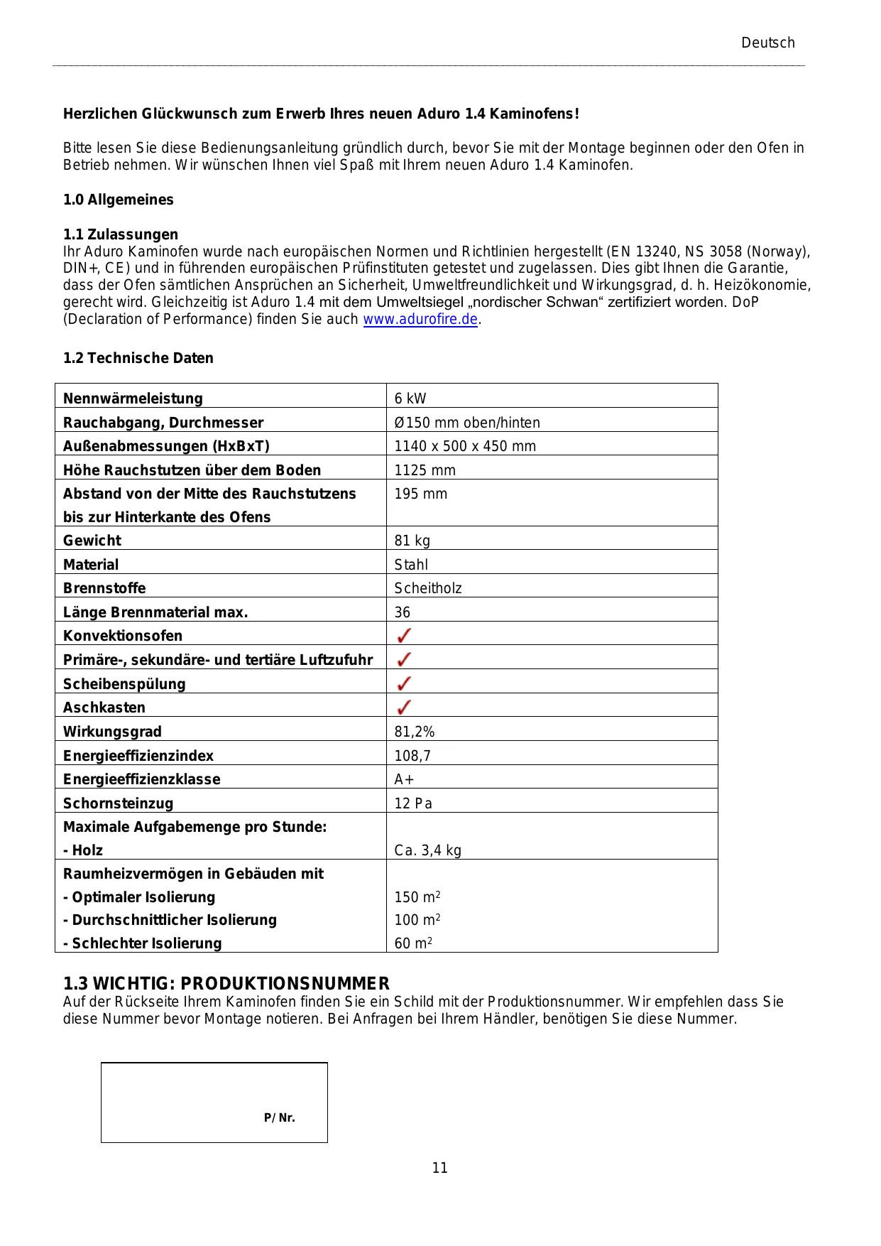 1.4 - Holzofen ADURO - Kostenlose Bedienungsanleitung