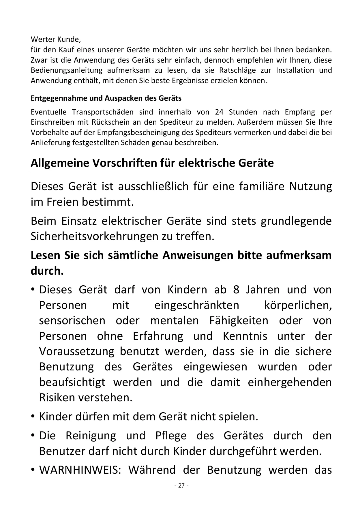 8 ans et plus et par des personnes ayant des capacités physiques, sensorielles ou mentales réduites ou un manque d'expérience et de connaissances à condition qu’elles aient reçu une supervision ou des instructions concernant l’utilisation de l'appareil en toute sécurité et qu’elles comprennent les dangers encourus.