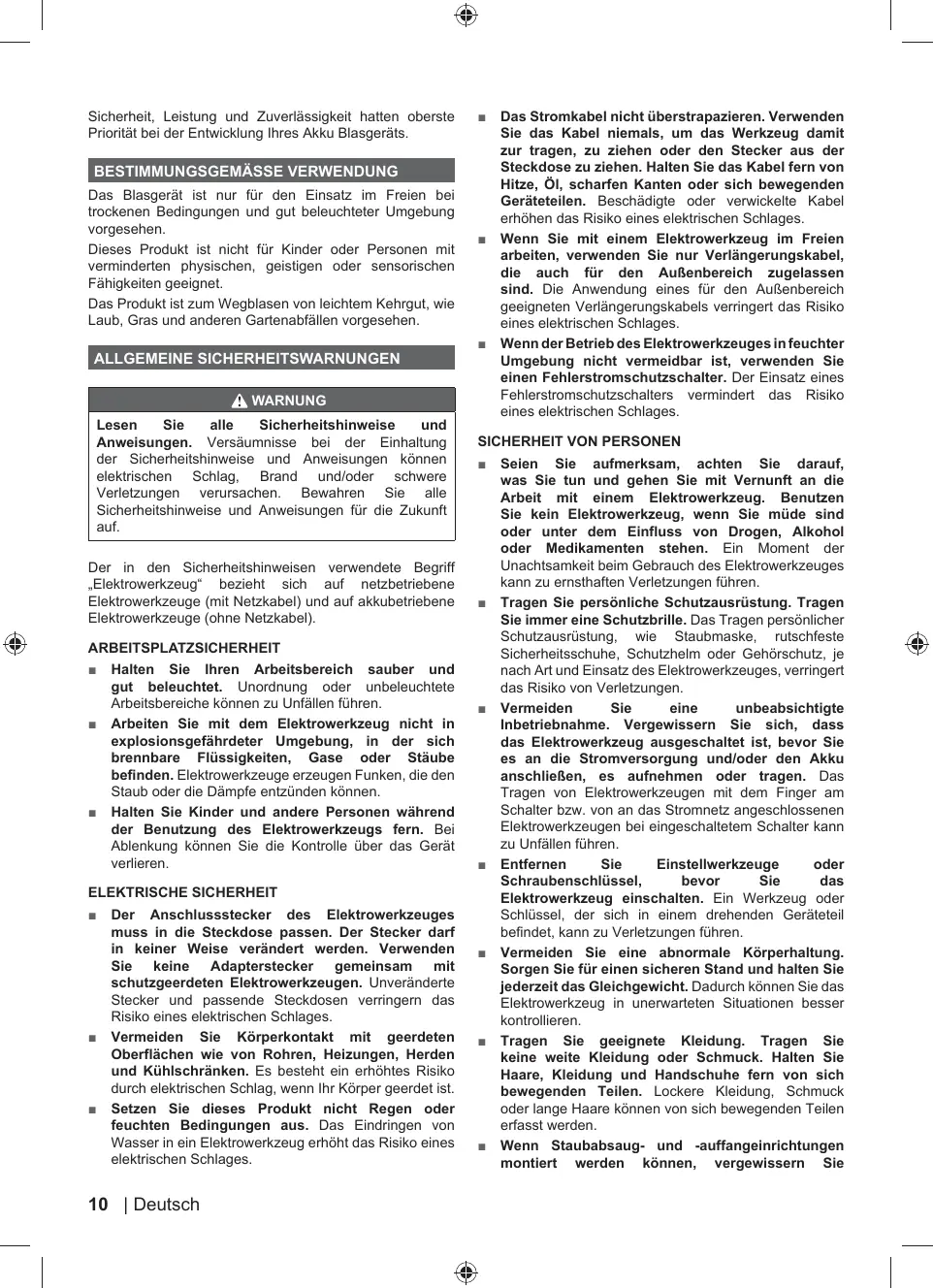 = Ne pas faire fonctionner les outils électriques en atmosphère explosive, par exemple en présence de liquides inflammables, de gaz ou de poussières.