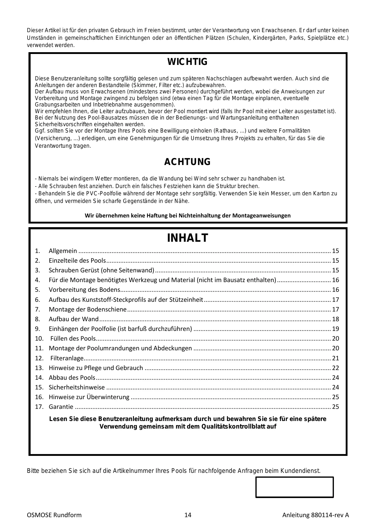 Laden Sie die Anleitung für Ihr Pool kostenlos im PDF-Format! Finden Sie Ihr Handbuch OSMOSE N°880114 - TRIGANO und nehmen Sie Ihr elektronisches Gerät wieder in die Hand. Auf dieser Seite sind alle Dokumente veröffentlicht, die für die Verwendung Ihres Geräts notwendig sind. OSMOSE N°880114 von der Marke TRIGANO.