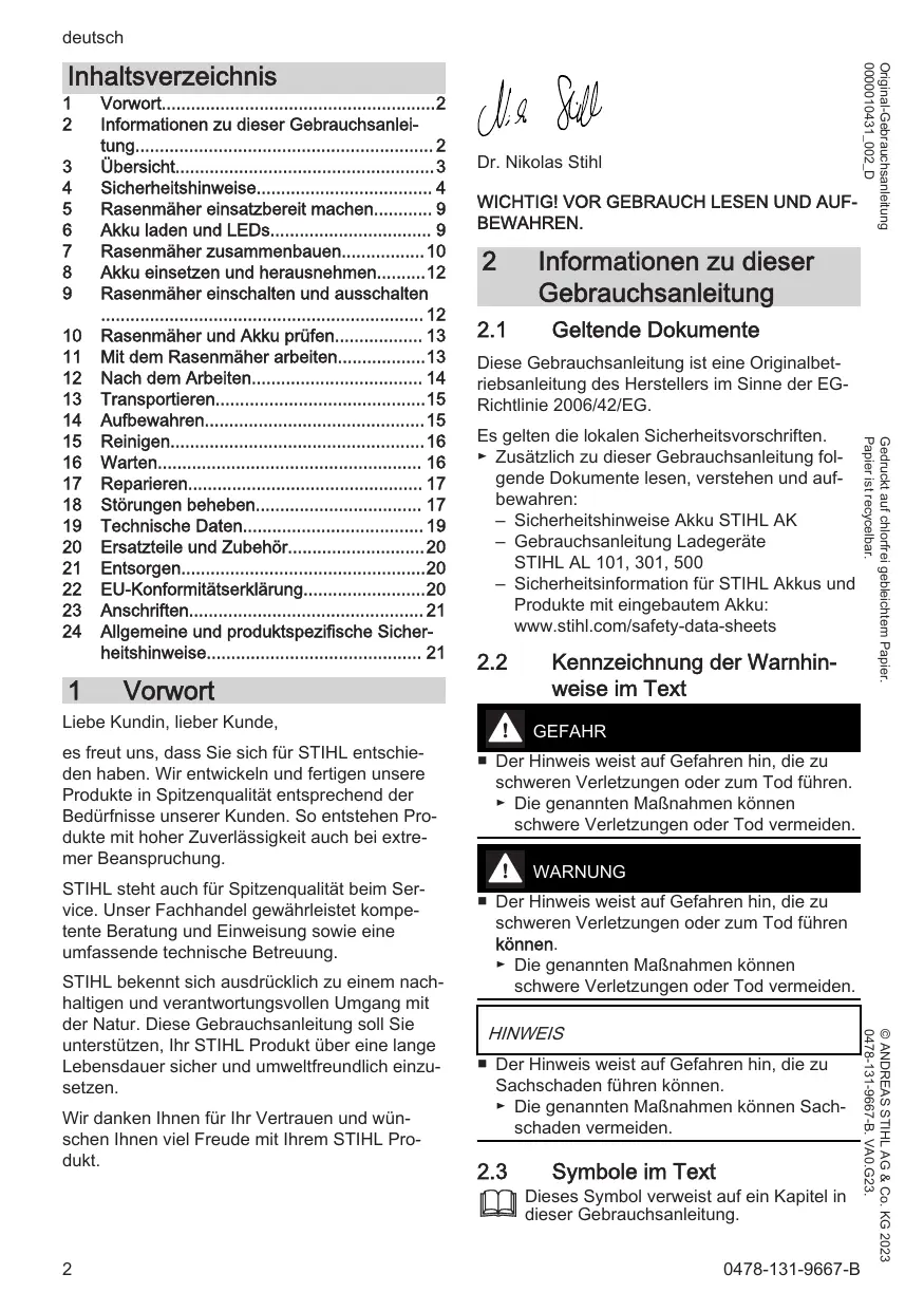 RMA 235 PACK AK20*AL101 - Elektrischer Rasenmäher STIHL - Kostenlose Bedienungsanleitung