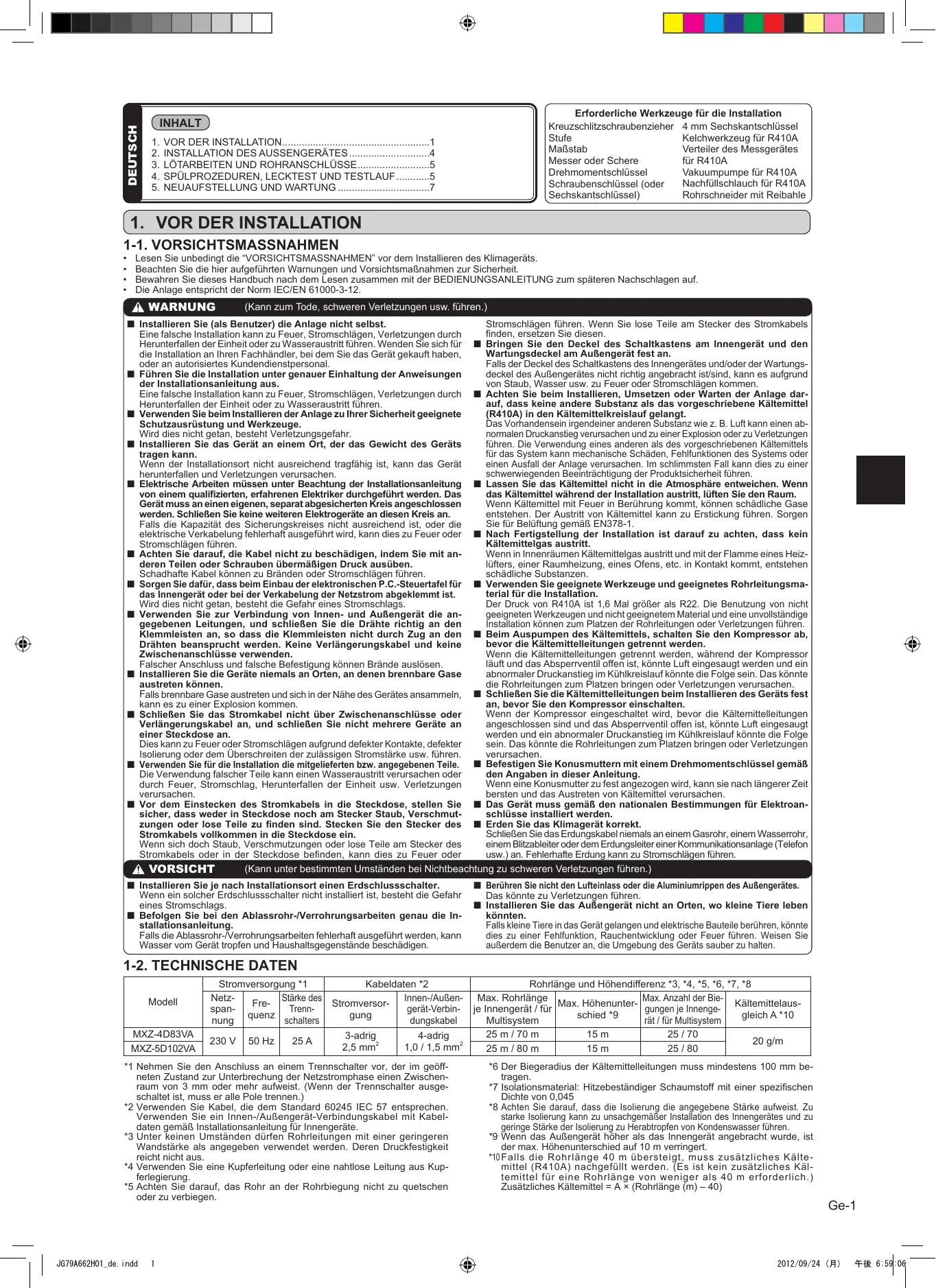 BEDIENUNGSANLEITUNG MXZ-4D83VA MXZ-5D102VA MITSUBISHI ELECTRIC