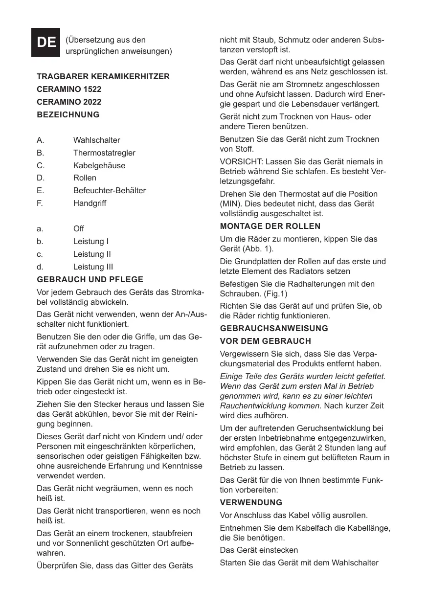BEDIENUNGSANLEITUNG CERAMDUO 1522 - CERAMINO 2022 SUPRA