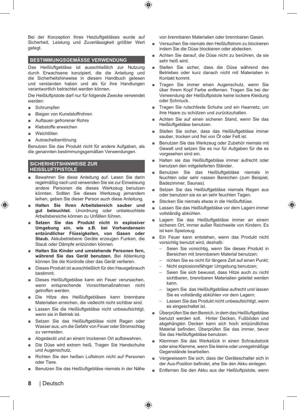 N'utilisez jamais le pistolet thermique en combinaison avec des solvants.