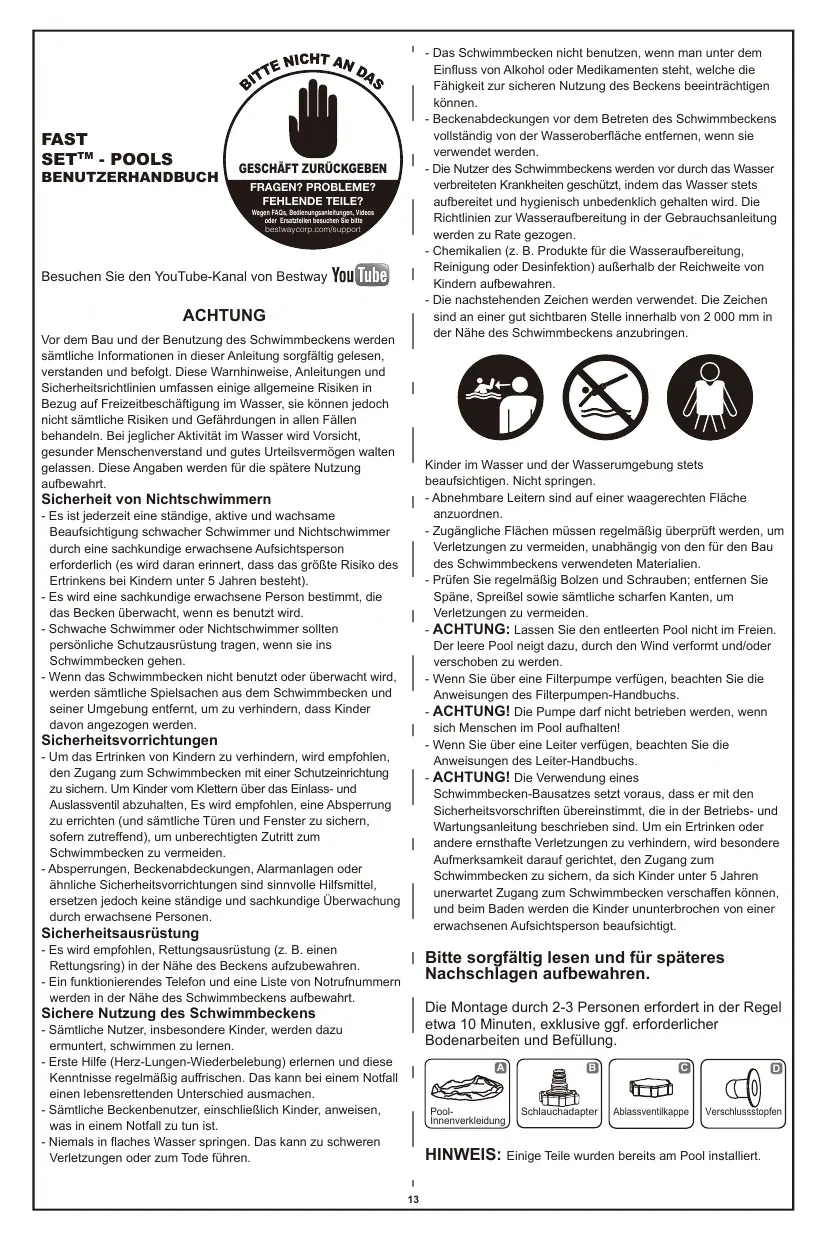 BEDIENUNGSANLEITUNG FAST SET BESTWAY