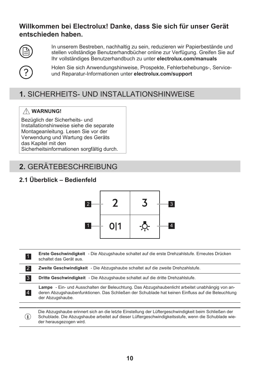 LFP226S LFP326W LFP325S LFP326S - Hotte tiroir ELECTROLUX - Kostenlose Bedienungsanleitung