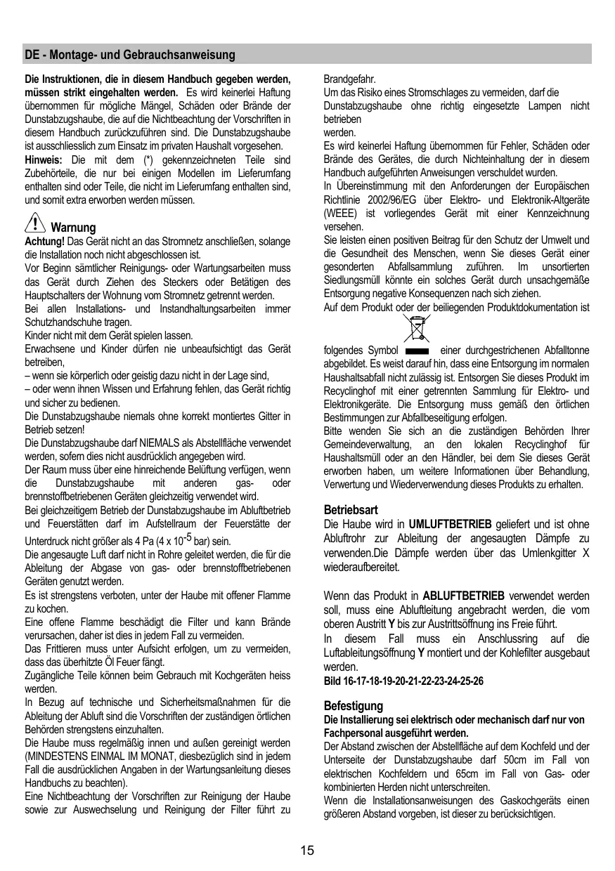 En ce qui concerne les mesures techniques et de sécurité à adopter pour l'évacuation des fumées, s'en tenir strictement à ce qui est prévu dans les règlements des autorités locales compétentes. La hotte doit être régulièrement netoyée, aussi bien à l'intérieur qu'à l'extérieur (AU MOINS UNE FOIS PAR MOIS, respecter néanmoins les instructions relatives à l'entretien fournies dans ce manuel)