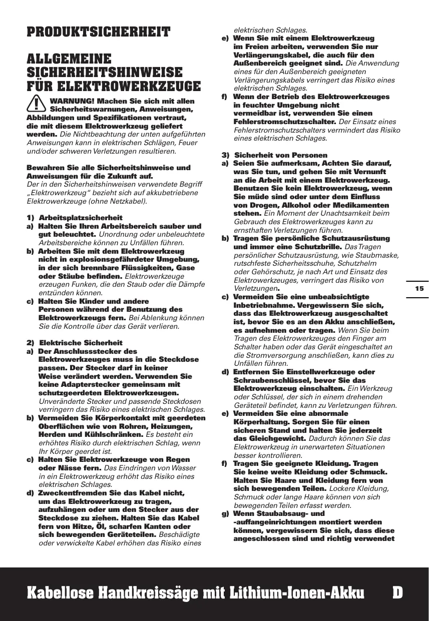 1. Utiliser uniquement des lames de scie recommandées par le fabricant, conformes à la norme EN 847-1, si elles sont destinées à couper du bois et des matériaux similaires.