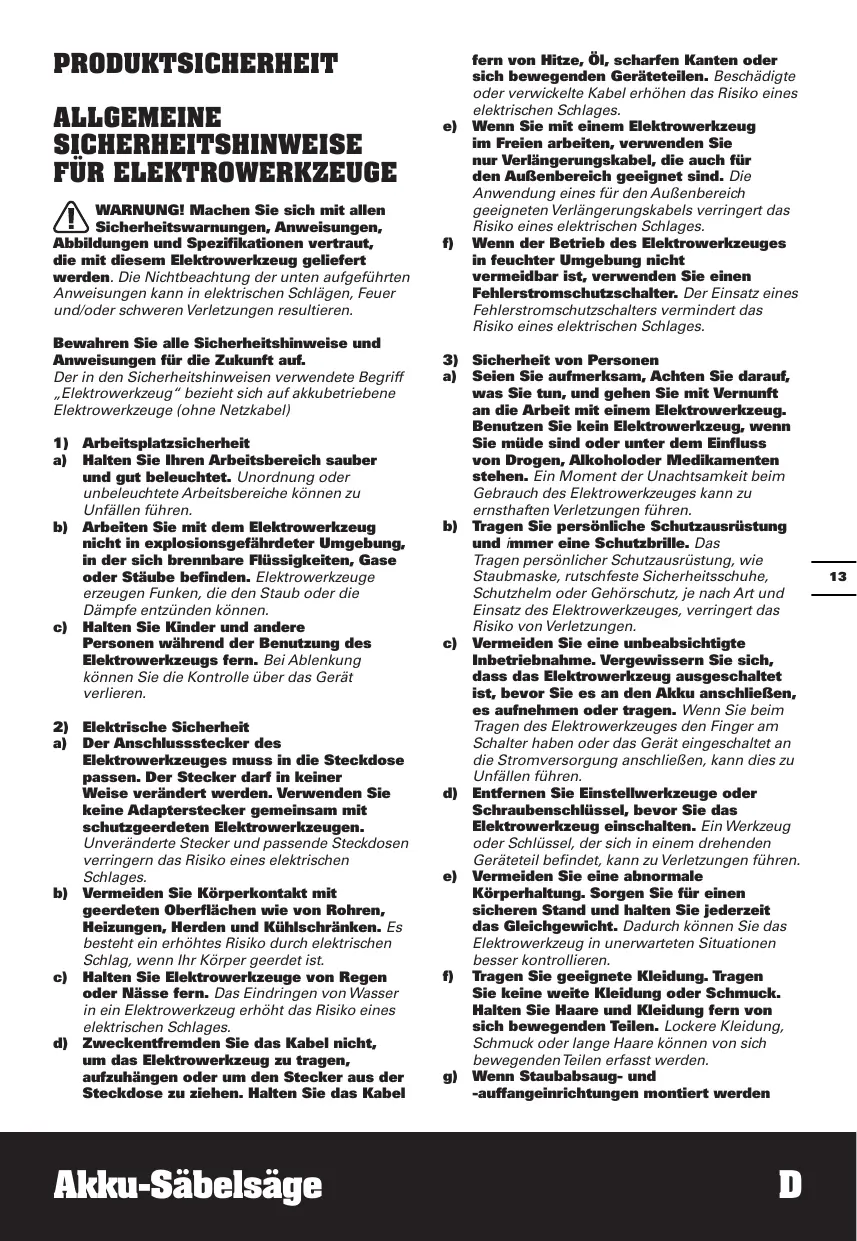 AVERTISSEMENTS DE SÉCURITÉ POUR SCIE SABRE