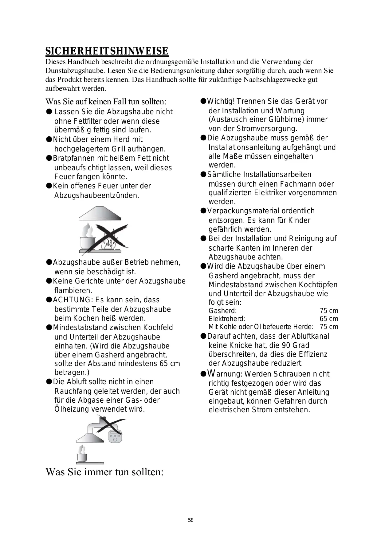 @Quand la hotte aspirante et les appareils alimentés par autre chose que de l'électricité fonctionnent simultanément, la pression négative à l'intérieur de la pièce ne doit pas dépasser 4 Pa (4 x 10-5 bar).