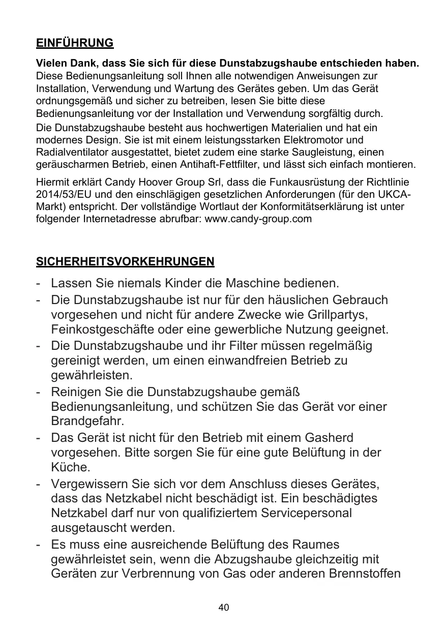 Par la présente, Candy Hoover Group Srl déclare que les équipements radio sont conformes à la directive 2014/53/UE et aux exigences légales applicables (pour le marché UKCA). Le texte intégral de la déclaration de conformité est disponible à l'adresse internet suivante : www.candy-group.com