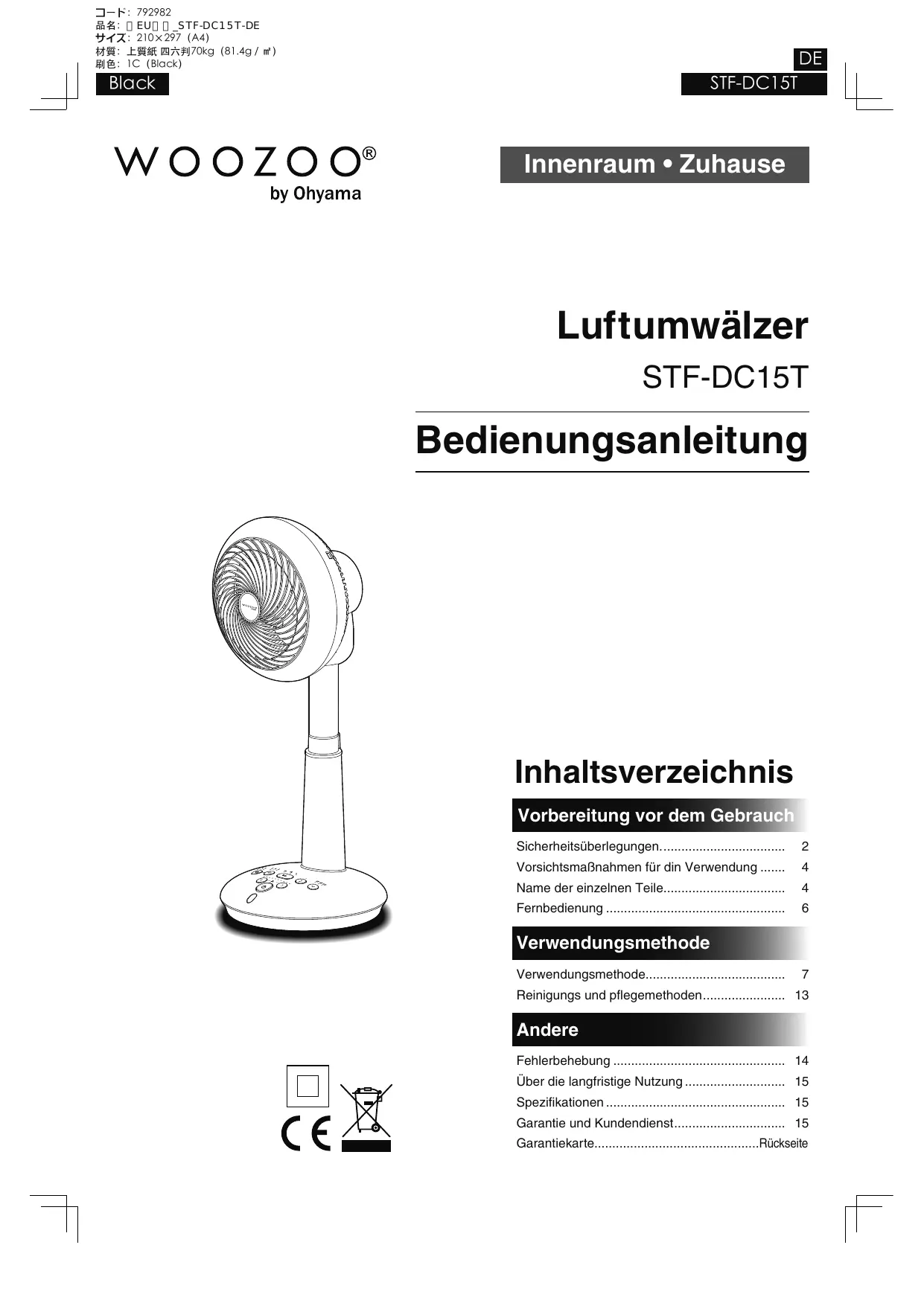 STF-DC15T - Ventilator WOOZOO - Kostenlose Bedienungsanleitung