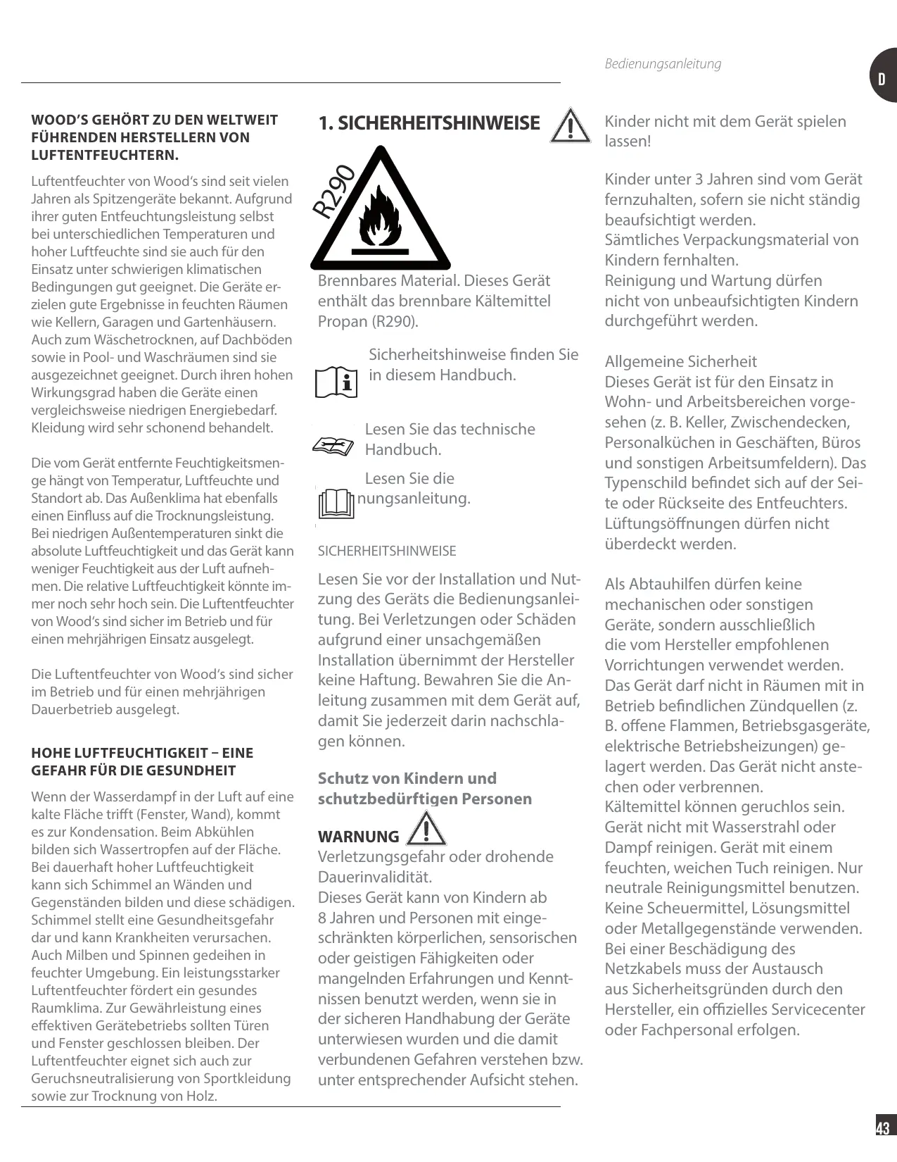 Les déshumidificateurs Wood's sont sûrs et ont été conçus pour une utilisation continue pendant de nombreuses années.