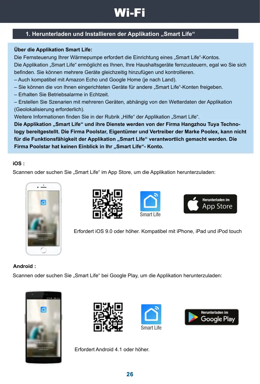 L'application et les services «Smart Life» sont fournis par la société Hangzhou Tuya Techno- logy. La société Poolstar, propriétaire et distributeur de la marque Poolex, ne pourra être tenu responsable du fonctionnement de l'application «Smart Life». La société Poolstar n’a aucune visibilité sur votre compte «Smart Lit