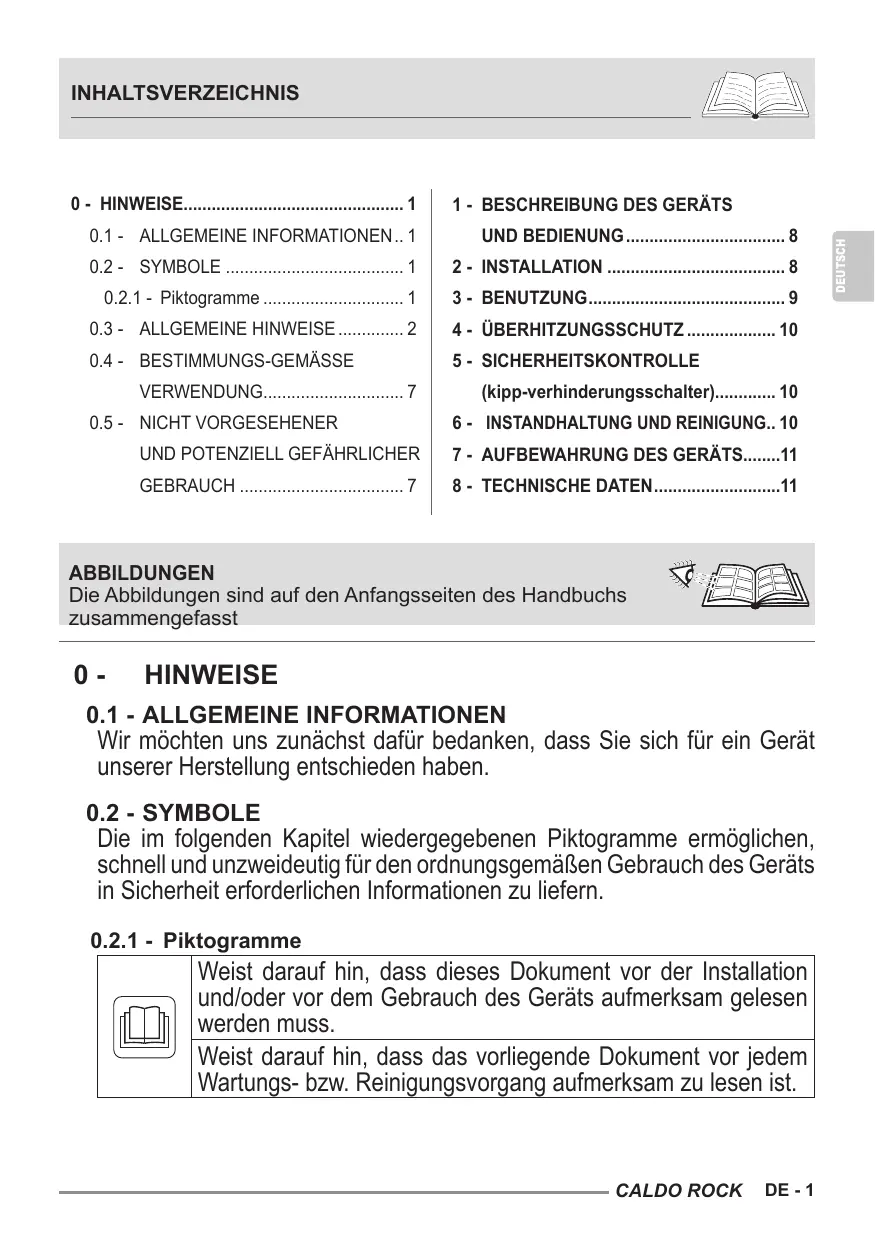 BEDIENUNGSANLEITUNG CALDO ROCK OLIMPIA SPLENDID