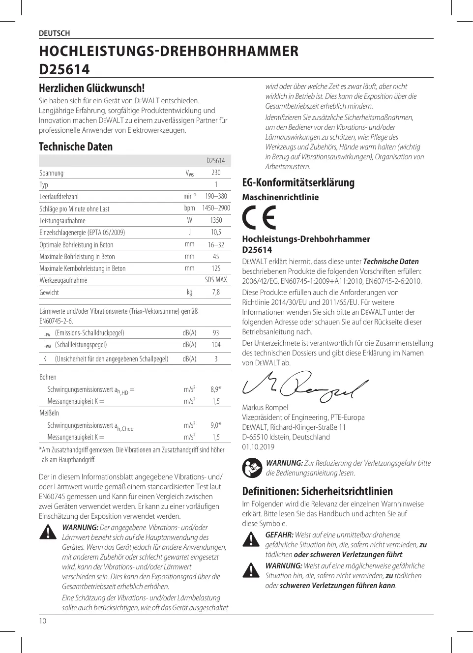 Le soussigné est responsable de la compilation du fichier technique et fait cette déclaration au nom de DEWALT.