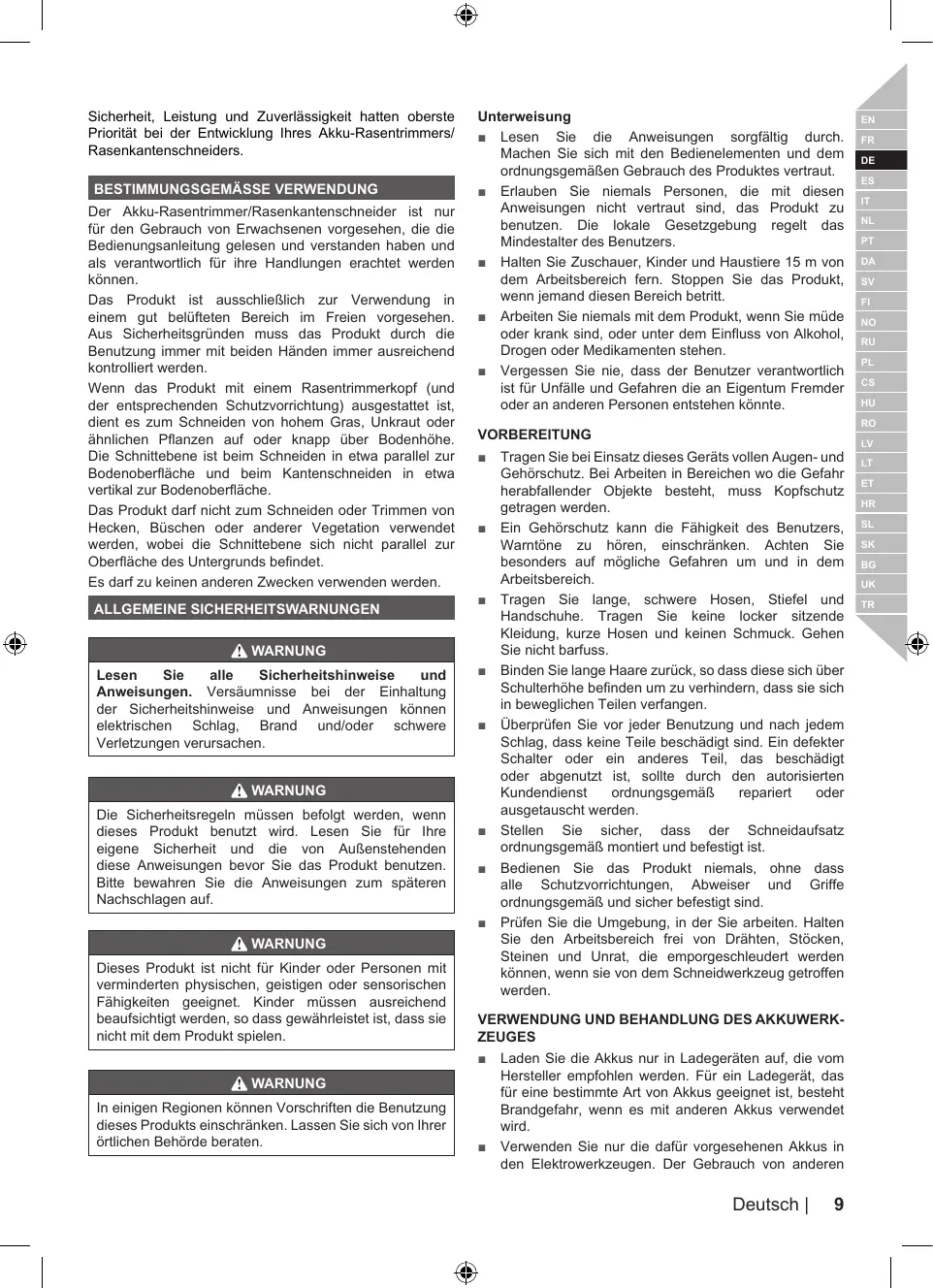 DE SÉCURITÉ CONCERNANT AZON/COUPE-BORDURE Ne laissez jamais les enfants, les personnes aux capacités physiques, sensorielles ou mentales réduites ou n'ayant pas l'habitude ou les connaissances suffisantes, ni les personnes non familiarisées avec ces instructions utiliser ce produit