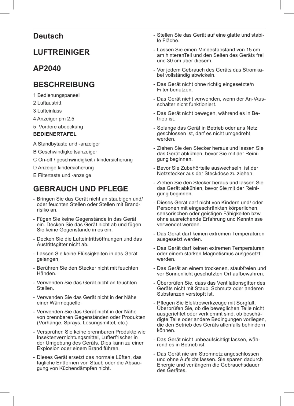 AP2040 - Luftreiniger TAURUS - Kostenlose Bedienungsanleitung