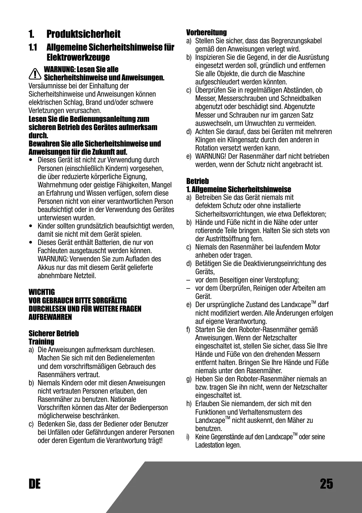 LX910 - Mähroboter LANDXCAPE - Kostenlose Bedienungsanleitung
