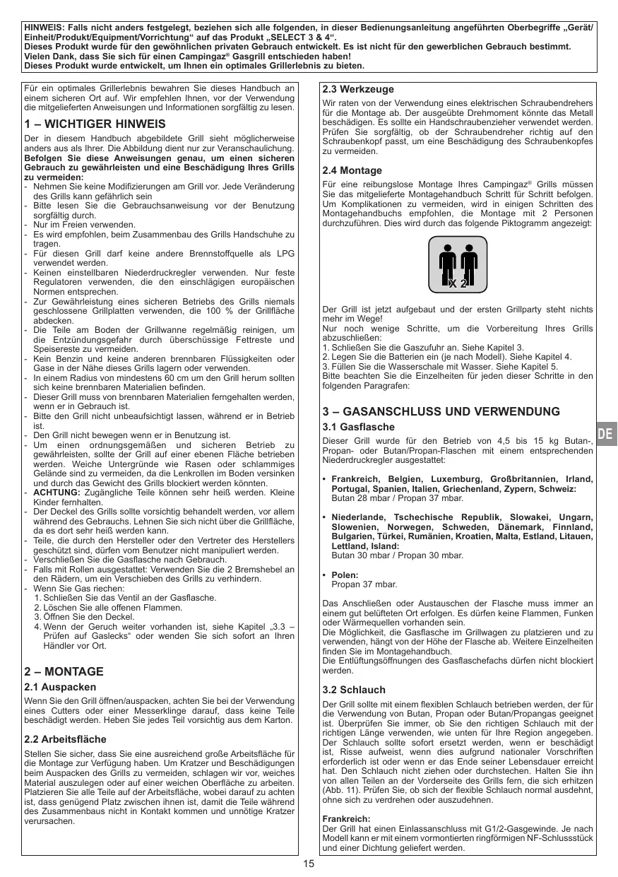 BEDIENUNGSANLEITUNG SELECT 3 LX PLUS CAMPINGAZ