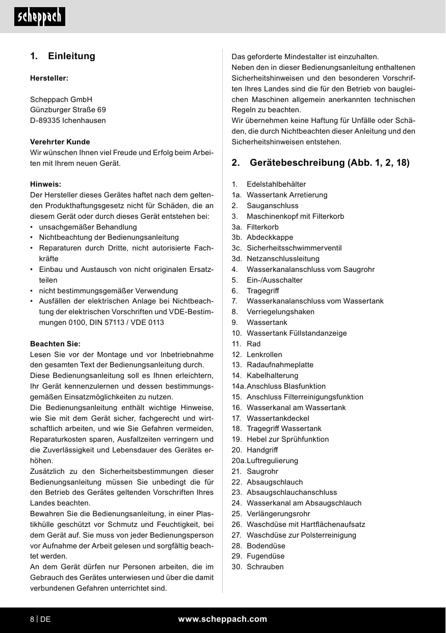 Finden Sie kostenlos die Bedienungsanleitung des Geräts SPRAYVAC20 SCHEPPACH als PDF.