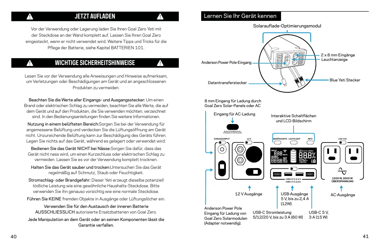 Finden Sie kostenlos die Bedienungsanleitung des Geräts YETI 3000X GOAL ZERO als PDF.