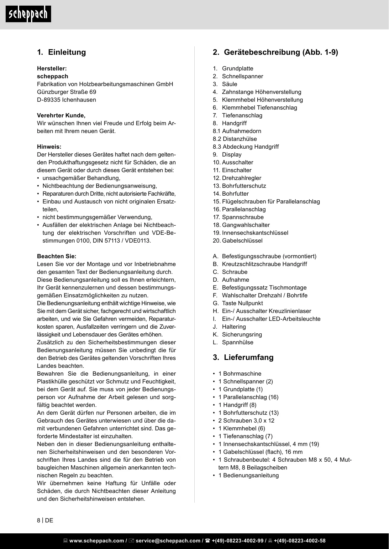 Finden Sie kostenlos die Bedienungsanleitung des Geräts DP60 SCHEPPACH als PDF.