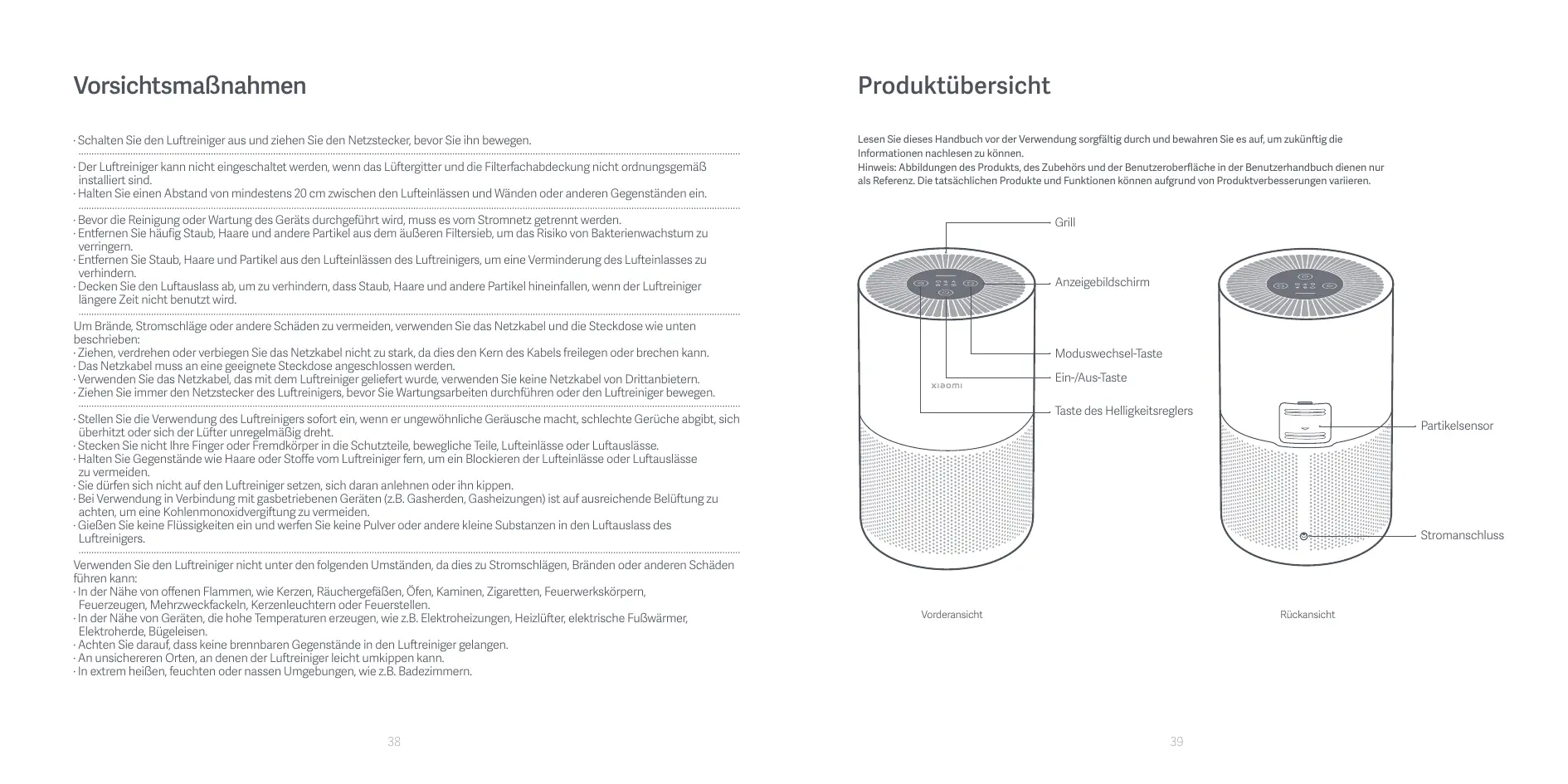 Finden Sie kostenlos die Bedienungsanleitung des Geräts MIAIR4COMPACT Xiaomi als PDF.