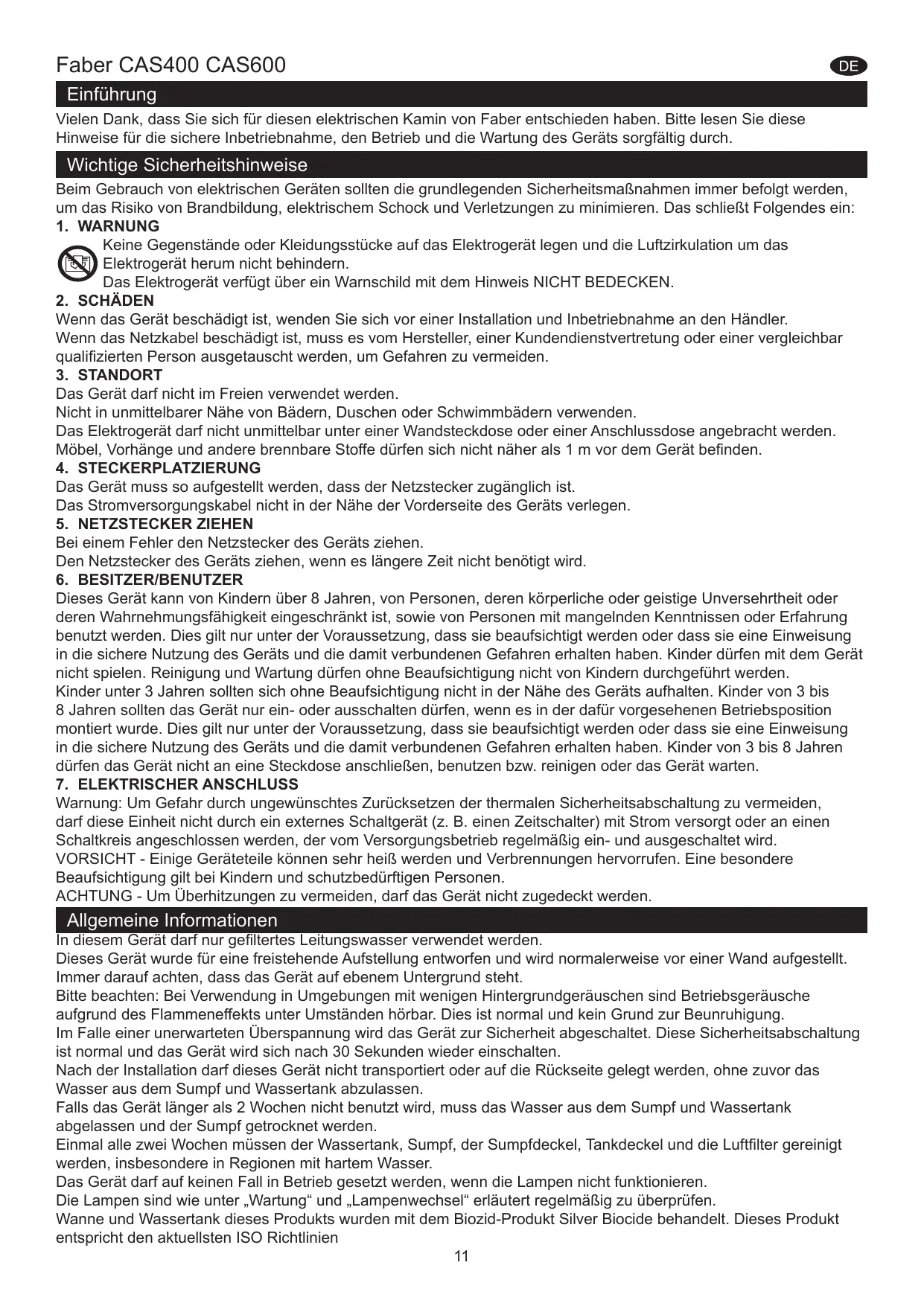 Laden Sie die Anleitung für Ihr Cheminée électrique kostenlos im PDF-Format! Finden Sie Ihr Handbuch CAS400 - CAS600 - FABER und nehmen Sie Ihr elektronisches Gerät wieder in die Hand. Auf dieser Seite sind alle Dokumente veröffentlicht, die für die Verwendung Ihres Geräts notwendig sind. CAS400 - CAS600 von der Marke FABER.