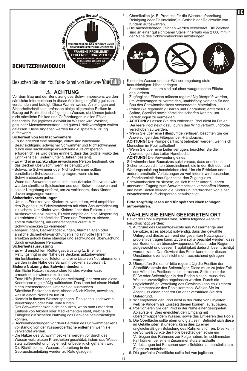 BEFÜLLEN DES POOLS ACHTUNG: Lassen Sie den Pool während des Befüllens nicht unbeaufsichtigt.