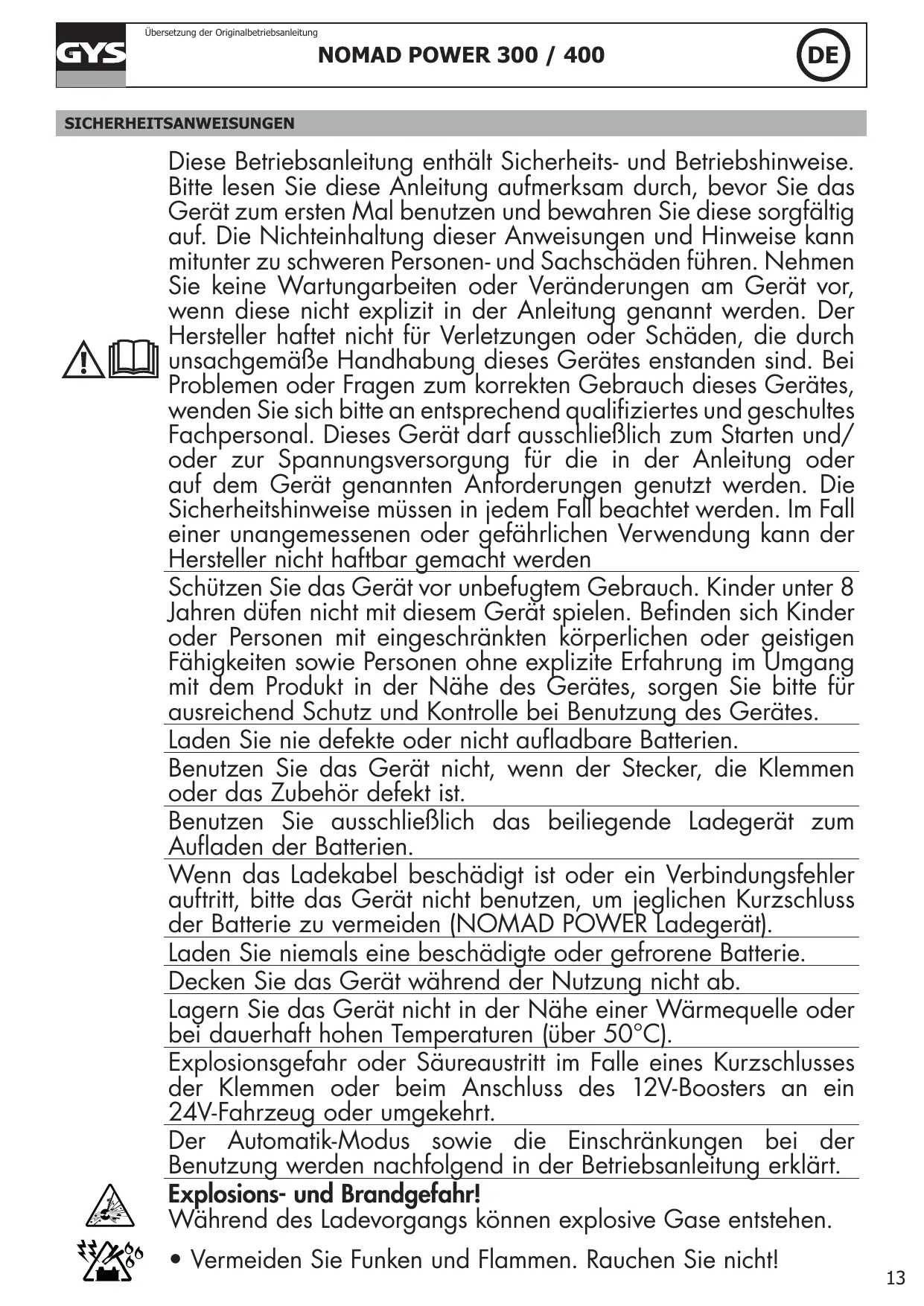 BEDIENUNGSANLEITUNG NOMAD POWER 400 - 300 GYS